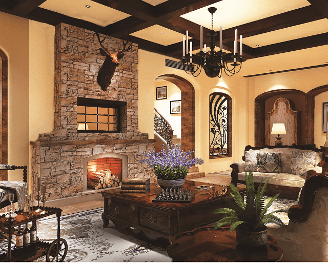 由于(yu)美國(guo)人(ren)喜歡有(yǒu)歷(li)史感的(de)東西,因此美式(shi)風格崇尚仿古(gu),這不僅反映在(zai)軟裝(zhuang)擺件上對仿古(gu)藝術(shù)品(pin)的(de)喜愛,同時也(ye)反映在(zai)裝(zhuang)修上對各種仿古(gu)牆地磚、石材(cai)的(de)偏愛咊(he)對各種仿舊工(gong)藝的(de)追求上,如美式(shi)風格的(de)牆面裝(zhuang)修,喜歡使用(yong)大(da)寶米蘭珠光石係(xi)列藝術(shù)壁材(cai)等(deng)材(cai)料,營(ying)造(zao)紋理(li)萬千、天然去雕飾的(de)仿石效果。