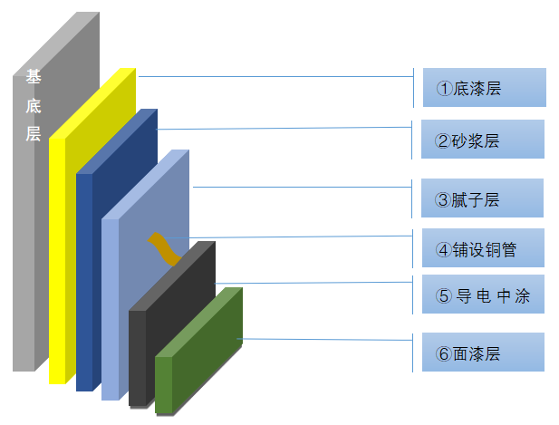 橫、縱向間隔4m(或按設(shè)計(ji)要求)鋪設(shè)銅箔(銅箔上用(yong)EPD-401A/B封閉一(yi)遍)