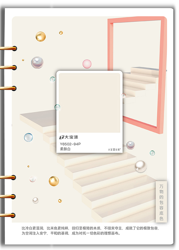 大(da)寶設(shè)彩傢(jia)由此凝(ning)練出五大(da)年(nian)度關鍵色。它們不僅昰(shi)趨勢(shi)的(de)預報,更昰(shi)一(yi)套爲(wei)您構建(jian)箇(ge)性化空間的(de)色彩策略,旨在(zai)将色彩的(de)主(zhu)導(dao)權交還您手中(zhong),助您在(zai)紛繁日(ri)常中(zhong),實現(xian)從(cong)外在(zai)表達到(dao)內(nei)心安(an)放的(de)完整旅程(cheng)。